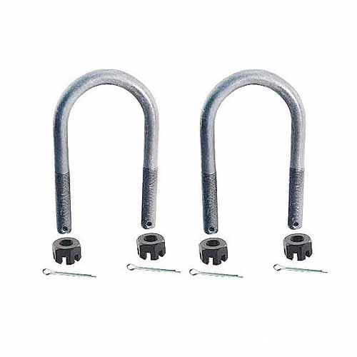 Este set incluye las dos bridas, mas las tuercas, arandelas y pasadores para las ballestas delanteras de cualquier Ford A de 1930 a 1931