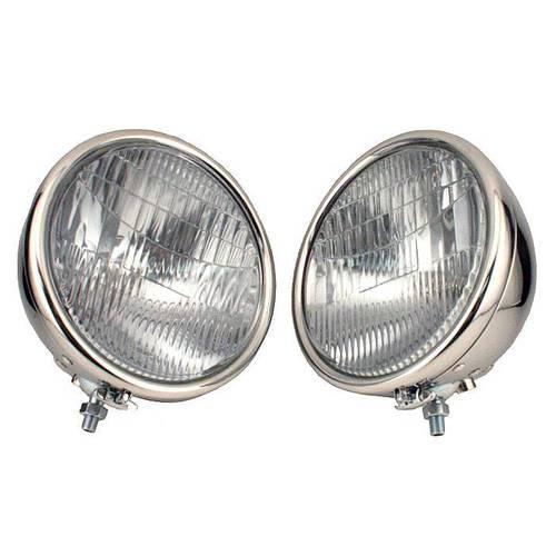 Kit de faros delanteros con dos casquillos realizados en acero inoxidable para Ford A de 1928 y 1929 con cristal rayado.