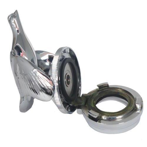 Una hermosa reproducción del famoso accesorio original de Ford. Incluye la tapa de cierre. Compatible con modelos de 1928 y 1929 con cuello de radiador roscado. La parte inferior de la tapa de cierre se fija al cuello del radiador para evitar robos. EE. UU.