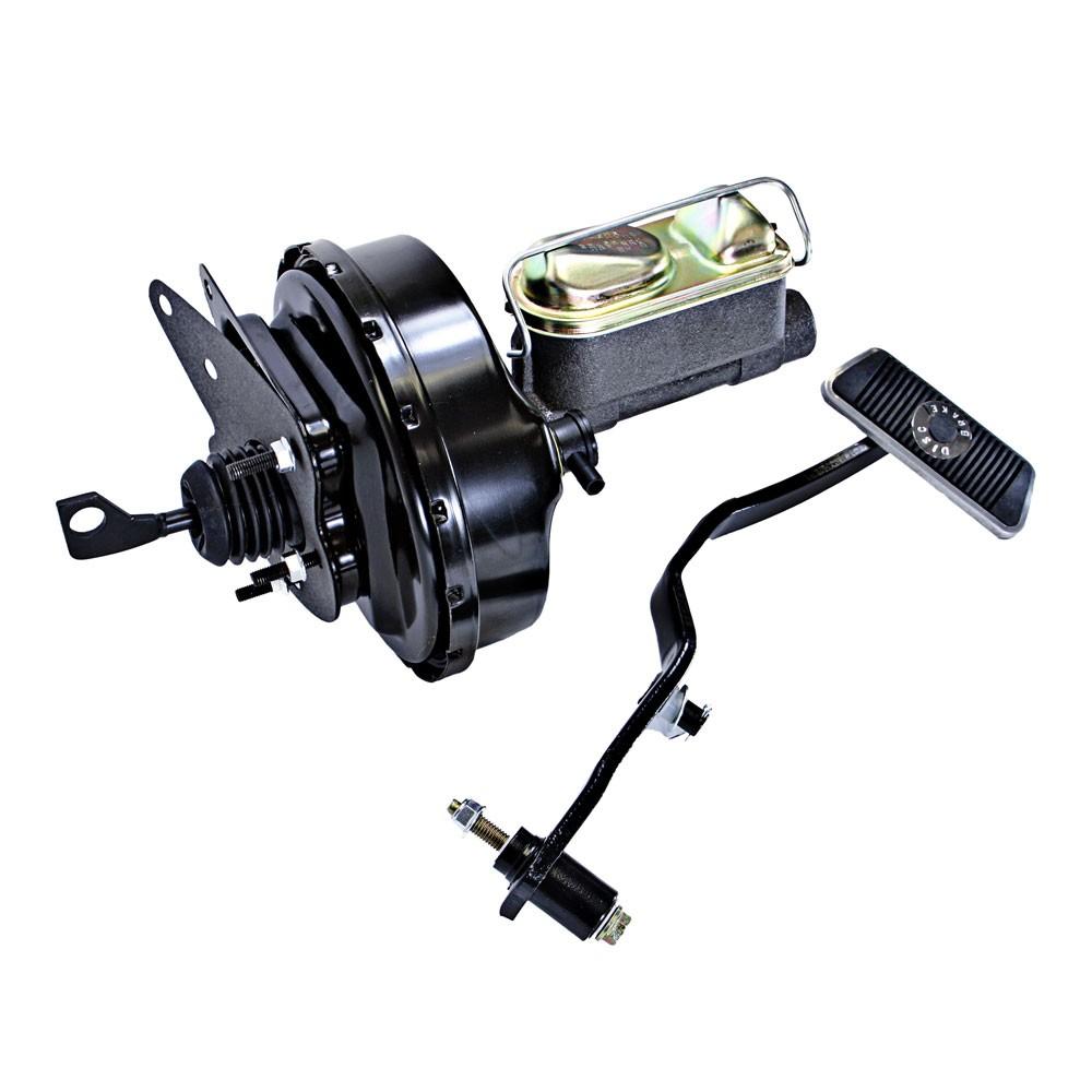 Convierta los frenos manuales en su Mustang a los frenos con servo usando nuestro kit de conversión de frenos de potencia con servofreno de diafragma de 9 "y un cilindro maestro de 1" de diámetro interior. Incluye: impulsor de freno de potencia de diafragma único de 9 ", cilindro maestro de doble depósito de diámetro interior de 1", soporte de montaje de refuerzo, varilla de empuje, manguera de vacío con accesorio colector, purgador de jeringa.