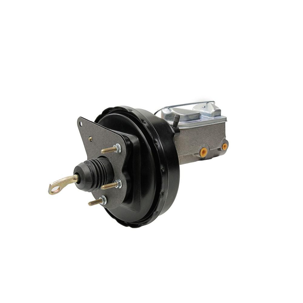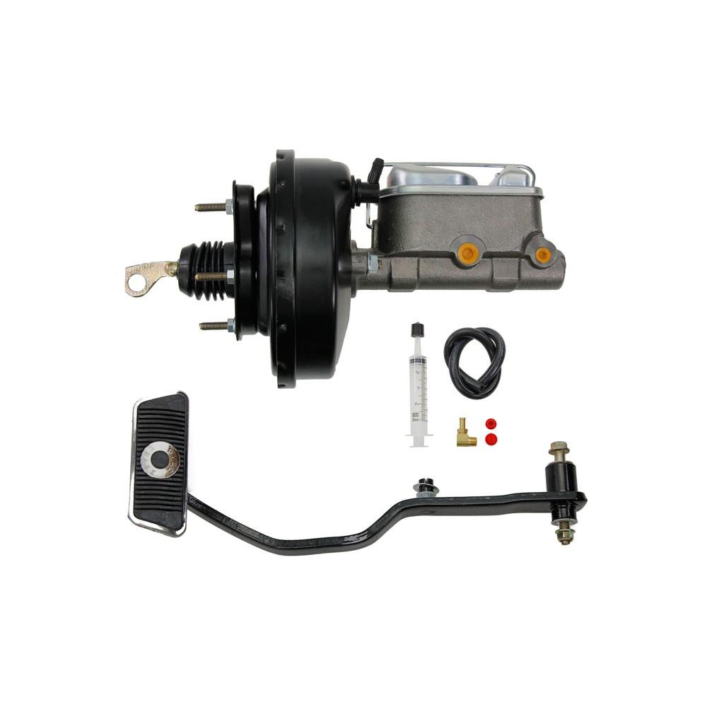 Convierta los frenos manuales en su Ford Mustang a los frenos con servo usando nuestro kit de conversión de frenos de potencia con un amplificador de freno de diafragma de 9 "y un cilindro maestro de 1" 1/8 de diámetro interior. Este kit incluye el servofreno de 9 ", bomba de freno de doble depósito de diámetro interior de 1" 1/8 , soporte de montaje de refuerzo, varilla de empuje, manguera de vacío con accesorio colector, Jeringa para purgar el circuito.