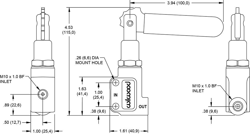 Esta válvula de dosificación tiene seis puntos preestablecidos accionados moviendo una palanca que permite a los corredores ajustar rápidamente la polarización del freno durante una carrera. La palanca “hace clic” en las seis posiciones para un ajuste positivo. Las válvulas pesan solo 6.1 onzas palanca y tienen dos orificios de montaje laterales de .25 "espaciados a 1.00". Los puertos de entrada / salida son 10MM X 1 burbuja flare.